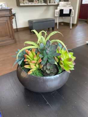 Artificial Succulents in Black Gourd Bowl DE016