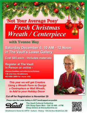 Fresh Christmas Wreath / Centerpiece Sat Dec 6th 10am - 12pm with Yvonne Way